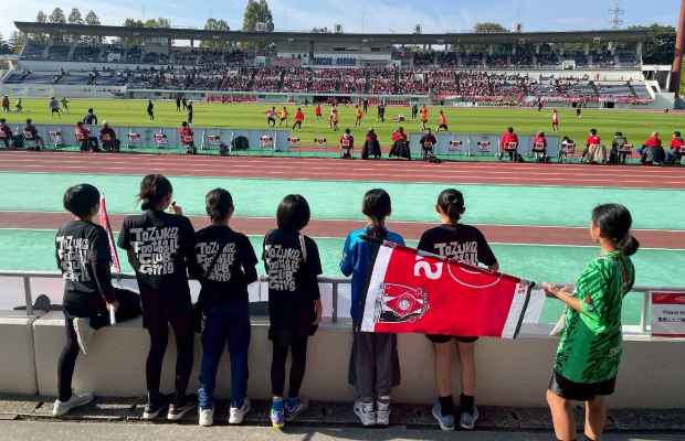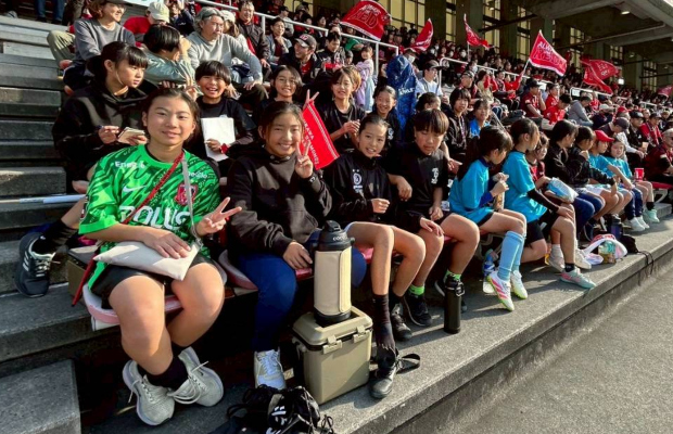 今回はU12全学年で応援に駒場スタジアムに集まりました。